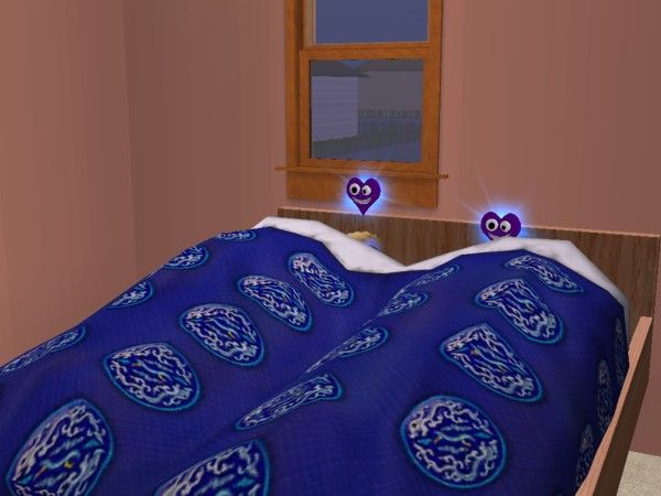 Pic of the day: Under cover. Too much lovemakingNot me, though. My Sims. OK, that is not exactly right either, but it makes a good headline. What happened is that I started another Sims 2 story, with a couple more changes toward realism. One is that my Sims must now borrow the money for their houses. They don't get a handout when they establish themselves in life. The other change is the "autonomous bed". It allows the Sims to pillow talk, cuddle, kiss, make out, make love, even try to have babies depending on their own wishes rather than because their creator says so. I should probably write a blue entry about this. In any case, after days of heavy thinking about vMemes and stuff, I am once again immersing myself in the world of the Sims until dawn draws near. So please have me excused for this time. |