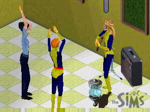 Pic of the game: Dazzler Jr dazzles her audience with the guitar. DJ's Day (The Sims)Dazzler Jr shook her head in disbelief. Chian trying to play the new electric guitar? Chian? "No fun" Chian, "Always flush and wash your hands" Chian, the girl they all called Grandmother even though she was just half a year older than Glassy and Scowler ... and she had the temerity to touch a noble instrument such as that? Dazzler Jr's heart went out to the poor guitar, to be violated like that. Better it had stayed in the shop than be dragged into Itland's School for Gifted Simsters and played like that. Quickly she made her way to the scene of crime, where a couple other onlookers already stared in shocked disgust. "Prrrblppppt!" said Guyana, which was nothing but the truth. Not that the carrottop tomboy could have done any better, Dazzler Jr reflected. ***Since the day she came to the School, a good week ago now, Dazzler Jr had found herself increasingly lonely among the small group of students. She felt different. First off, she was the only one who wore a mask. What's the point of being Special if you can't wear a mask and cool threads? Well, Glassy always wore his glasses, even to bed. Rumor had it that he even wore them in the shower; but when she had tried to find out, he had become quite angry and cursed her away. She thought he sounded like an angry duck, actually, but she did not say so. He was after all the closest she could come to someone like herself. Even if it was only glasses. The others also reacted in the same strange way. When they looked a bit down and she tried to juggle for them, they raspberried her and turned their back. And when she tried to tickle them, they cursed out loud and shoved her away! Even Roberto, who she had expected better from, barked at her when she tried to give him a little backrub. What burr was up the pants of all these people? She had tried to talk with them, but they always talked about strange and boring things, like money and crime and stuff. And they were out all day, or sometimes night, doing stuff with the military or with labs or other government stuff. Glassy was working with a hospital, Light knows what his Gift was. He never talked about it. So she was sometimes all alone here, finding out new and exciting meals - at least they ate her food - and finishing their pathetic attempts at painting. Painting was fun. She could lose herself in it for hours, not noticing anything until the painting was finished. ***"Well, could any of you do it better?" asked Chian in a challenging tone. "I'd like to think so" replied Dazzler Jr before she knew she had opened her mouth. They all turned to her, giving her that look again. But she held firm. "Well, it's all yours." Chian put the guitar down and stepped away from it. Mechanically, the golden-haired masked girl walked up and took it. She thought she could feel ... something, even as she touched the slick surface, even before her fingers touched the strings and the first sound came. And she knew it, as soon as she heard the first chord. It all came back to her. The toy xylophone that she had got as a present from her aunt, the one her parents burned because "the devil was in the music". The secret pleasures of playing the panflute of the neighbor girl, until her parents found out. The boy with his face full of acne, who had taught her to play the guitar, until he tried to play with something else and she had run away screaming. The music within her rose to meet the vibrations from the huge bass loudspeaker. And suddenly she knew why the mysterious Founder had chosen her to attend the School for Gifted Youngsters. She knew her Gift, and it knew her. The faces of the small group in front of her changed, first to absolute surprise. Her fingers seemed to move on their own, weaving harmonies that she had never heard before. The faces changed to childlike delight and excitement. Whispered words of admiration. Some of them started to move to the music. Suddenly everyone in or near the house seemed to flock to the corner where she stood. She did not mind. She could feel the energy flowing, she lost herself in the music ... ***Glassy touched her arm lightly, and she stopped playing and looked at him. "Uhm, DJ? We just got fined §500 for keeping the neighbors awake long past midnight. Not that it wasn't worth it, and the policewoman took her time too. But I think we should stop now." She put the guitar down, and suddenly felt how dead tired she was, hardly able to stand on her feet. The others were dispersing, most of them to the sleeping hall. She could need that herself - but was there food on the table? She always tried to keep some food there, or the poor guys would have to live off snacks. Well, Guyana made meals too, but they were not very good. She took a few steps and stretched. Light, she was stiff. Suddenly she heard Glassy's voice behind her, surprisingly low and shy for the leader type he really was. "DJ? You look like you could really need a backrub." She turned her head and smiled. "I guess I could", she said. (Based on a series of events at my School for Gifted Simsters. Playing an instrument, especially the guitar from Living Large, can really get people to like you, if you're good. The longer they listen, the more friendly they will feel.) |