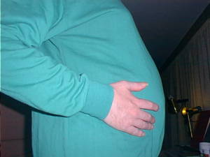 Pic of the day: OK, I ate till it hurt and pushed my guts out, but still ... there's definitely some surplus luggage there. Battle against the bulgeThere are invented many diplomatic ways to describe this condition of middle-aged men: "He's got guts - they're hanging over his belt" being one of the less diplomatic. Others that come to mind being "beer belly", "pondus", "backpack on the stomach", "CEO tummy" and "age-related bonus". I am sure your local language has other colorful descriptions. Yes, I am referring to the combination of fat and relaxed musculature that makes our guts bulge out, unless there are cute women in the area, in which case we painfully try to keep it all in. Ahem. Perhaps we shouldn't. Very few things in the human body are completely useless. Whether you believe our body has been designed by a wise Creator or just forged by millions of years of harsh trial and weeding, there is usually a reason for everything. Including the infamous bulge. Throughout history, food has not often been as plentiful as it is here in the post-industrial world. The ability to store some surplus in our bodies has traditionally been a Good Thing. And the distribution of fat on the body is also significant: Women usually start to store the fat below their waist, particularly on hips and thighs. This fat is very hard to release back into the bloodstream, though it will eventually give in to prolonged hunger. It is however released by certain hormones related to reproduction, during late pregnancy and during breastfeeding. Well, unless the running intake of fat is enough even in those times. In contrast, we men typically have our fat stored more above the waist, typically first inside the body around kidneys and guts, eventually on the guts and finally all over the body, including the neck. (The same will eventually happen to women when their primary reservoirs are filled.) This upper fat is more easily released back into the bloodstream. In fact, any prolonged stress is likely to send the lipids churning into that red river. This is not necessarily a good thing, if the work we do is not physical. A high level of fatty acids in the blood increases the risks for hardened arteries and eventually heart infarcts. But by default, a bulging gut indicates a successful male. Incidentally, it also tends to mark him as available to females, as the gut tends to be flattened in periods of intense erotic activity. Like falling in love and stuff. (Or so I have heard.) Of course, we humans are not directly ruled by instinct. So while the bulging gut may have helped our stone-age ancestors attract a mate, the effect seems rather diminished these days. ***Regardless of this, I have noticed more and more of these bulges around me. For a rich country, Norway has a surprisingly fit and lean population. But this is slowly changing as we approach that lighthouse of western civilization, the USA. (Some will point out that lighthouses are there to avoid, not to steer straight on. In this particular case, they may have a point.) Here in Scandinavia, we have this saying: "Norwegians eat to live; Danes live to eat; and Swedes eat to drink." But these roles are blending, and particularly the Norwegian one is getting really diffuse. I don't even except myself here. Of course, there is no law of nature that says we're going to continue the same way as in the past. Oh wait, there is. It is called "inertia". And the greater the mass, the more inertia, right? :) ***Luckily, there are some things we quasi-pregnant males can do to brake before we splatter on the dark cliffs of cardiovascular dysfunction. In fact, there are so many different approaches that there should be one for almost any personality. If you are cheap, for instance, you could simply eat less. And in particular less meat, which is not only expensive but also very rich in energy. If you are not growing up or building muscle, there is no reason to have lot of protein in your diet anyway. The body can recycle most of its proteins, and there is some protein even in plants. Cheap food like grains, beans and fresh produce are also good to lose weight. In short, cheap is good. For the more active among us, excess fat is as good an excuse as you can get to jump on your bike or pull on your jogging gear, park the car, take the stairs ... all that stuff. Actually recent research has shown that if you start to exercise in your 40es, the added lifetime is roughly similar to the time you spend exercising ... so if you hate it, you may want a different approach. But some minimum of movement is necessary to keep the body functioning, or it may eventually self destruct. Half an hour of light exercise (brisk walk, house cleaning etc) three times a week is usually enough to convince the body that it is still inhabited. For those of a more sensual nature, this may be a good time to look for other sense pleasures than food. It is a fact that many are motivated by the pleasure principle, and there is a lot of fattening yummy food. But there are also delicious low-fat foods, and there are many other things to occupy the senses. The most obvious of which I think I shall leave to imagination. (Keep it legal, people!) I will however briefly mention the power of fragrance. Vanilla, in particular, has a surprising ability to satisfy the brain. You may make jokes about "plain vanilla", but more and more people now wear a vanilla patch they can sniff when they start to feel peckish for some snacks. It really satisfies. But also many other fragrances can help derail the thoughts from food. Overall, an increase in personal awareness might be helpful. Make a habit of meditating regularly if you feel that you need to expand your awareness. And make a rule to eat only at a certain place in the house ... dinner table, kitchen, whatever. Observation shows that people who snack in front of the TV or computer do so on a very primitive level, without applying their knowledge about healthy food, a